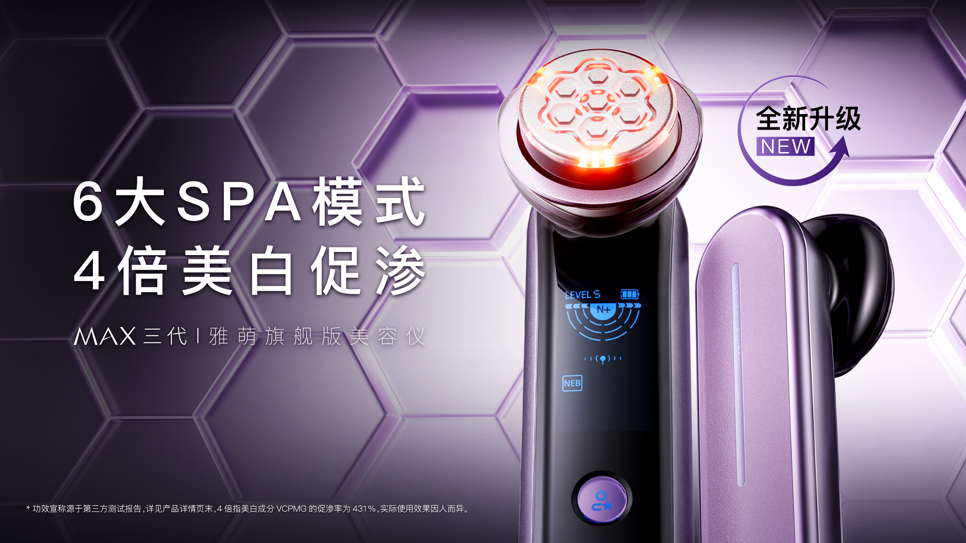 *【1】人体功效数据源自第三检测报告,报告编号为2023080446A01,为68名30-50岁亚洲女性28天测试结果。使用雅萌多功能美容仪MAX三代(型号YJFM24)搭配RATIO X 时献舒活精华水、日间赋活精华液、瑞斐时等化妆品,使用28天的对照组测试结果,实际使用效果因使用方式、搭配护肤品有所不同。